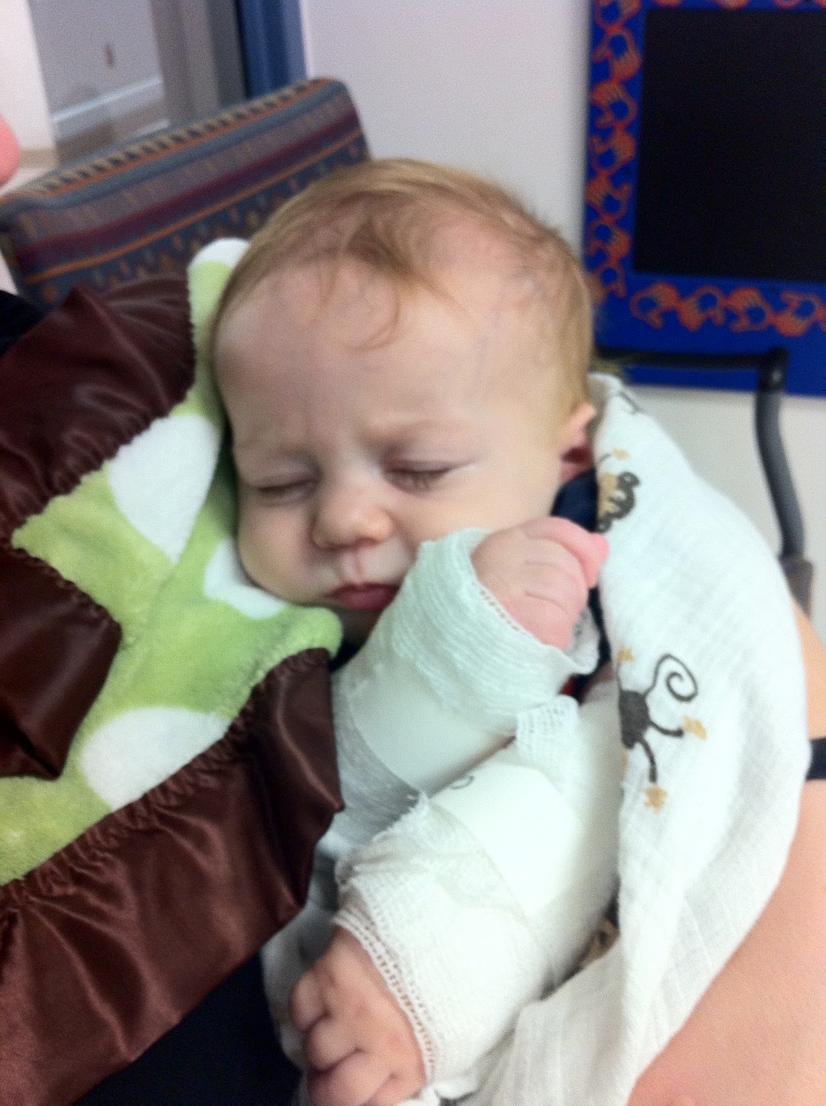 Our pediatrician wanted to have Drew tested for Cystic Fibrosis and he also wanted us to get a heart murmur checked out so we took the little guy to Arkansas Children's Hospital. The first couple of photos are Drew having his sweat test done for cystic fibrosis. Thankfully, everything came back negative!
